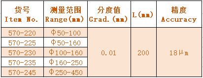 1.For internal measurement. 2.Changeable anvils for wide measuring ranges. 3.Equipped with a φ57mm dial indicator. 4.The length of L can be changed according to customer's requirement.