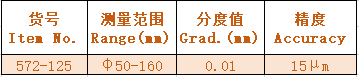 1.For internal measurement. 2.Changeable anvils for wide measuring ranges. 3.With indicator protective cover. 4.Interchangeable contact points, easy to use. 5.Roller aligning bridge. 6.Equipped with a φ57mm dial indicator.