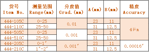 3.除0-25mm(1")規(guī)格外,其他規(guī)格提供一個(gè)校對桿   A calibration rod is supplied for range above 25mm(1").
