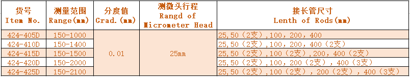 3.可根據用戶要求提供各種尺寸的內徑千分尺 Different sizes of internal micrometers can be supplied upon request of customers.