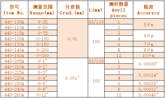 Accuracy:Micrometer head:±0.003mm(±0.00015")